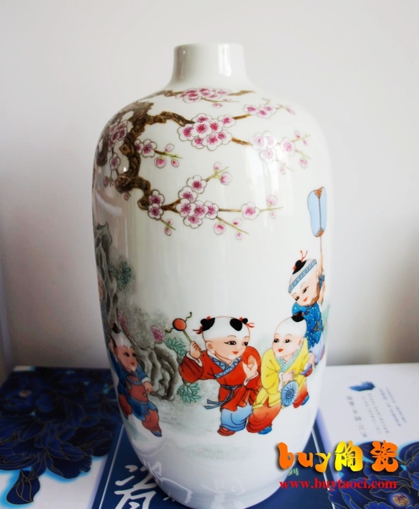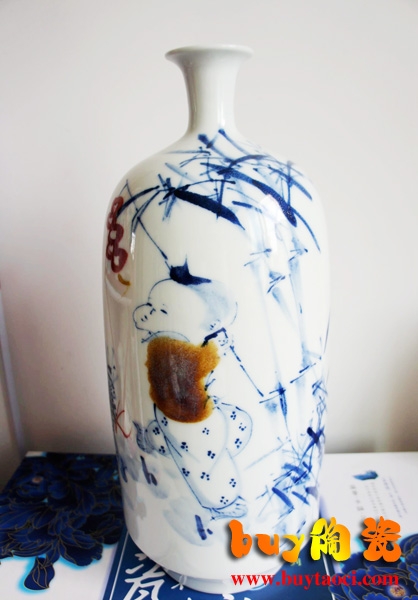 景德镇青花瓷童子花瓶...