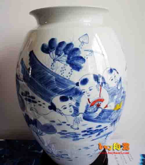 景德镇青花瓷童子花瓶,童子瓶专卖店