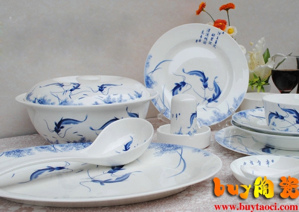 “莲”是“连”的谐音,年是“鲶”的谐音,“鱼”是“余”的谐音,又年年有鱼.连年有余是称颂富裕祝贺之词。每逢春节,人们总要供奉活鲤,并要在晚上吃芋(鱼)头,以示来年丰收。在包饺时也要剩很多菜馅以示来年财余。今天,连年有余不仅常见于平常百姓,在各企业单位中亦能盛行不衰。 参数/说明 : 品名:连年有余景德镇56头骨瓷餐具套装产地:江西景德镇 材质:骨瓷 工艺:釉中彩 用料:高环保、无铅原料 注意事项:洗碗机、消毒柜适用。 使用范围:礼品/居家/乔迁/结婚礼物及馈赠亲友。 商品清单: 8寸菜盘 - 10个(6深盘4浅盘) 10十寸大平盘 - 1个 4.25寸碗 - 10个 勺子 - 10个 味碟 - 10个 筷架 - 10个 牙签筒 - 1 个 大勺 - 1 个 汤碗 - 1 个 长鱼盘 - 1 个 烟灰缸 - 1 个 |