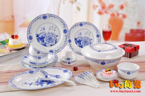 品名:心想事成56头骨瓷餐具套装